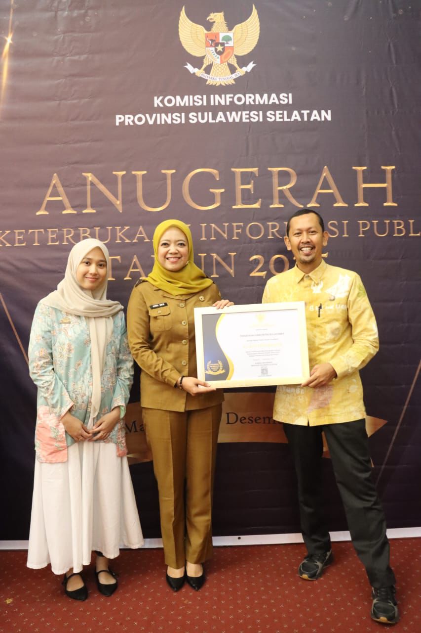 Penghargaan tersebut diterima oleh Kadis Kominfo dan Persandian Kabupaten Bulukumba, Andi Uke Indah Permatasari dari Ketua Komisi Informasi Provinsi Sulawesi Selatan, Fauziah Erwin pada ajang Anugerah Keterbukaan Informasi Publik 2025 Sulawesi Selatan yang digelar oleh Komisi Informasi Provinsi Sulsel ini di Ruang Rapat Pimpinan Kantor Gubernur Sulawesi Selatan, Senin, 22 Desember 2025.