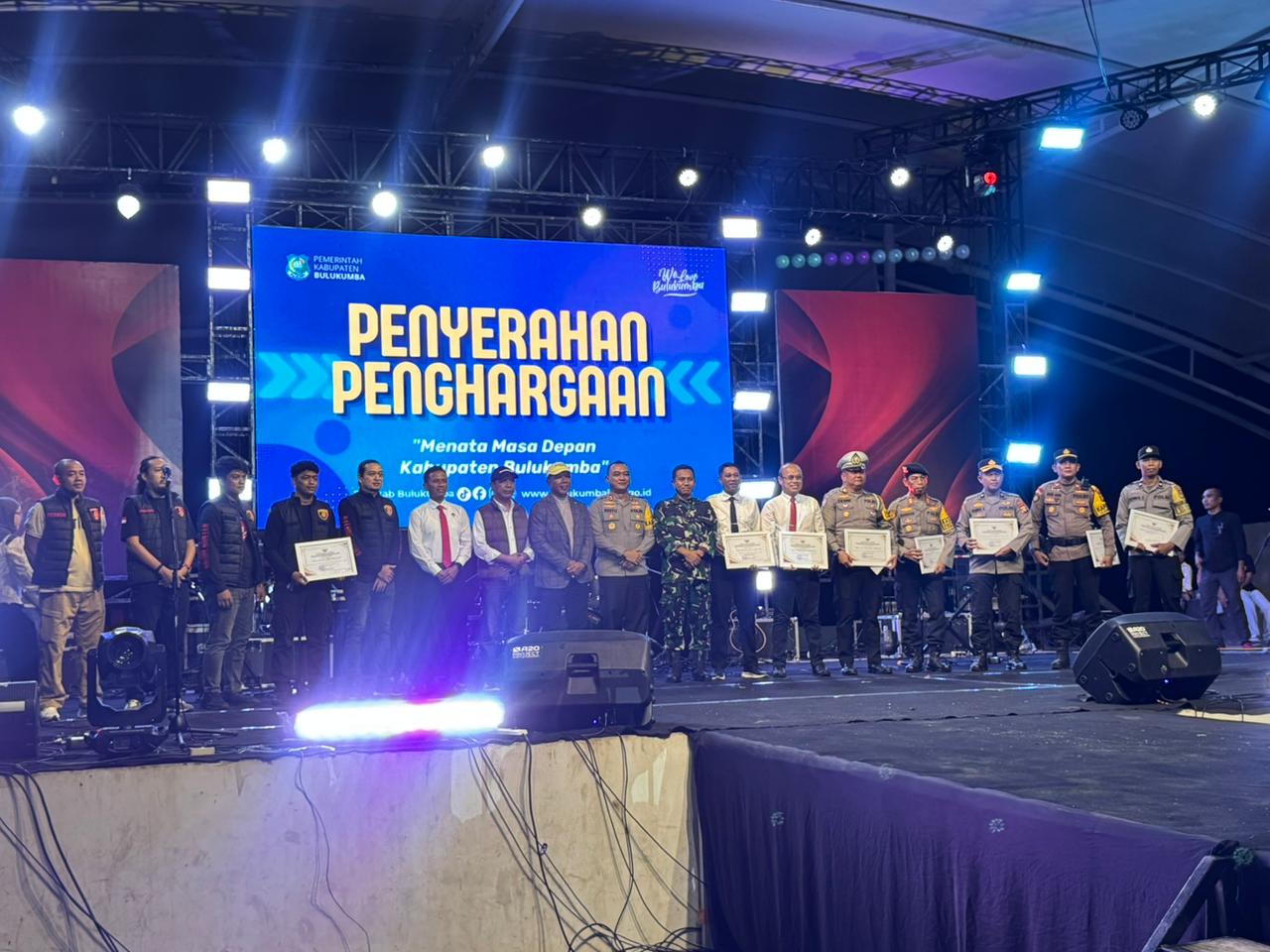 Penghargaan tersebut diserahkan langsung oleh Bupati di atas panggung utama dalam rangkaian perayaan malam tahun baru yang dihadiri oleh unsur Forkopimda dan masyarakat Bulukumba.