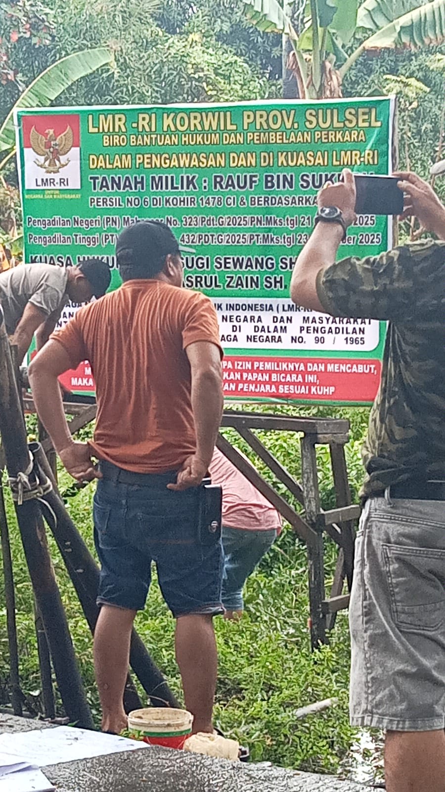 Langkah ini diambil sebagai bentuk pengamanan fisik sekaligus penegasan status hukum atas lahan yang terletak di Persil No. 6 di Kohir 1478 CI. Pemasangan papan bicara ini dilakukan guna menginformasikan kepada publik bahwa lahan tersebut saat ini berada di bawah pengawasan dan kuasa penuh LMR-RI Sulsel.