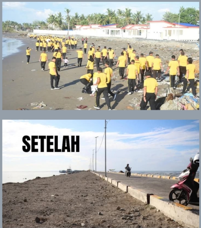 “Melalui kegiatan kerja bakti ini, kami berharap dapat menciptakan lingkungan yang bersih dan sehat di tempat umum, khususnya di sekitar pantai dan kolam labuh yang juga merupakan ruang publik yang sering dikunjungi masyarakat,” ujar Kompol Syafaruddin.