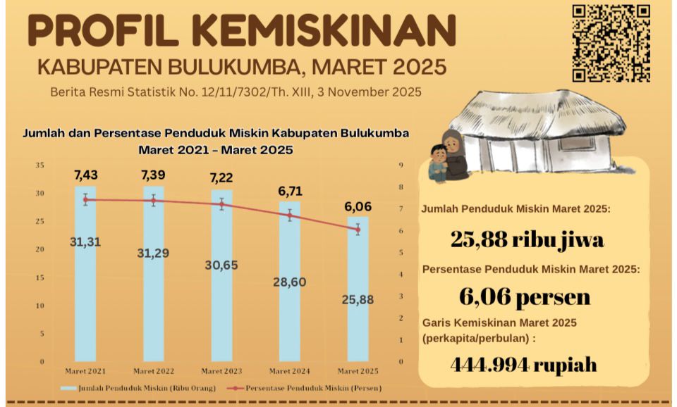 Pemerintah Kabupaten Bulukumba melalui Kabid Humas Diskominfo, Andi Ayatullah Ahmad menyampaikan bahwa jika ditarik ke belakang, tren penurunan kemiskinan terlihat jelas. Pada Maret 2021, angka kemiskinan Bulukumba masih berada di kisaran 7,43 persen, kemudian terus menurun menjadi 7,39 persen (2022), 7,22 persen (2023), 6,71 persen (2024), hingga akhirnya mencapai 6,06 persen pada 2025.