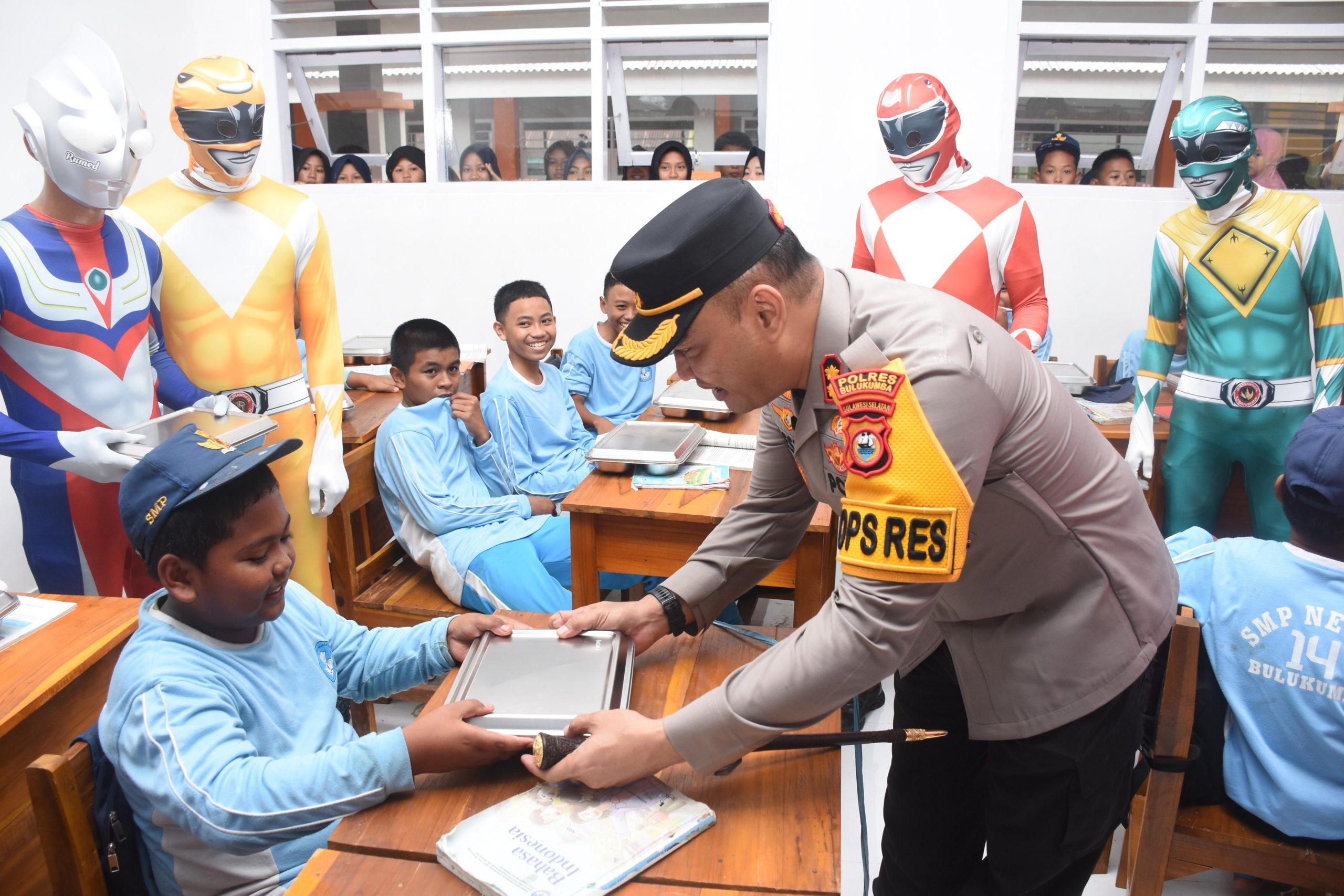Antusiasme tinggi terpancar dari wajah para siswa saat menikmati paket makanan sehat yang telah disiapkan secara khusus oleh jajaran Polres Bulukumba.
