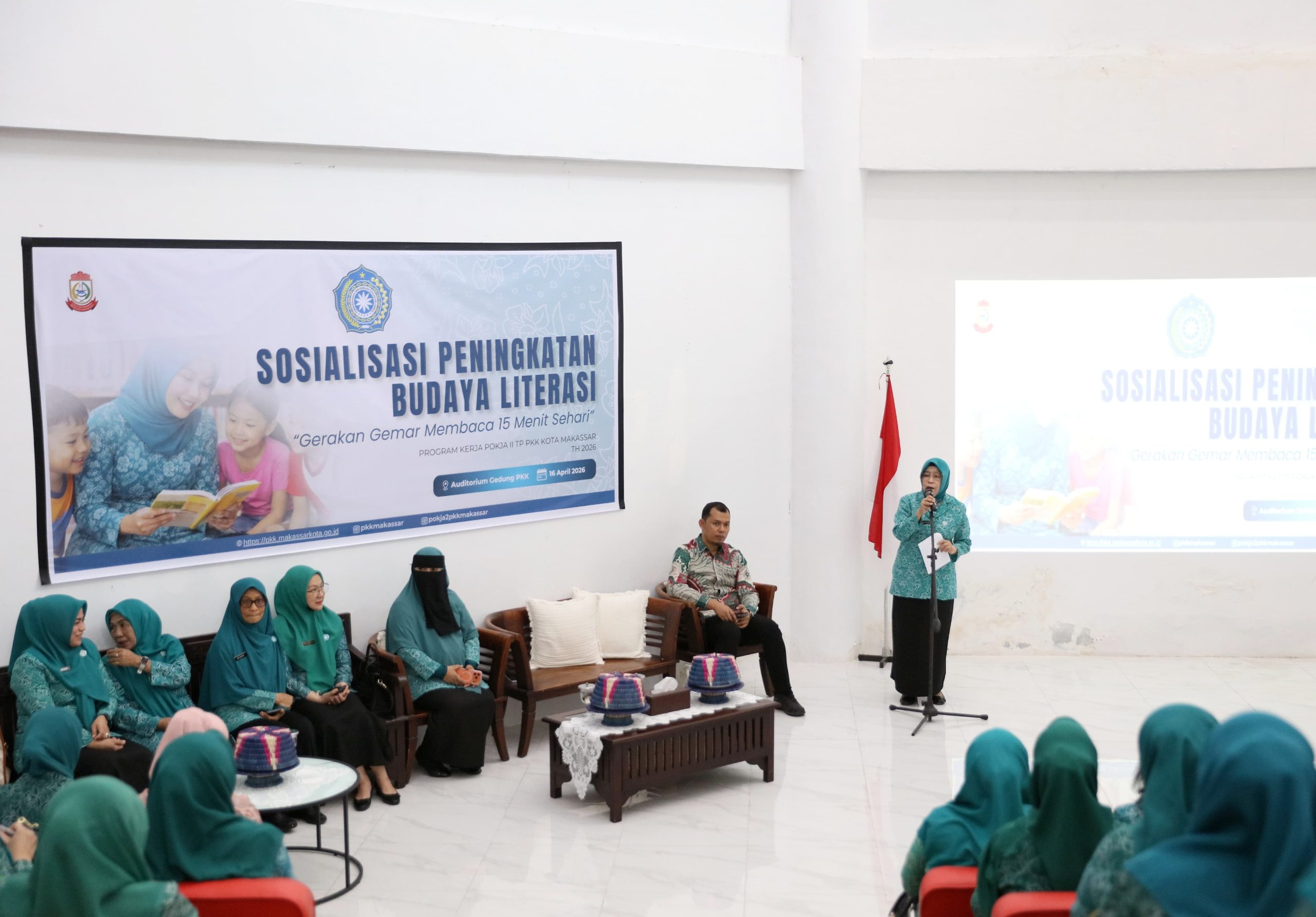 Titikkota.com – MAKASSAR – Tim Penggerak (TP) PKK Kota Makassar menggelar sosialisasi peningkatan budaya literasi bertajuk Gerakan Gemar Membaca 15 Menit Sehari di Auditorium Gedung PKK Kota Makassar, Kamis (16/4/2026).